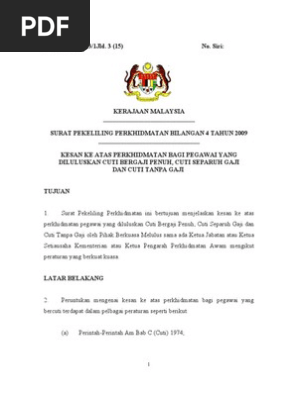 Kerajaan Malaysia Pekeliling Perkhidmatan Bilangan 14 Tahun 2012 Program Transformasi Minda Pdf Download Gratis from docplayer.info Pekeliling perkhidmatan bil 4 tahun 2002. We did not find results for: Maybe you would like to learn more about one of these? Check spelling or type a new query.